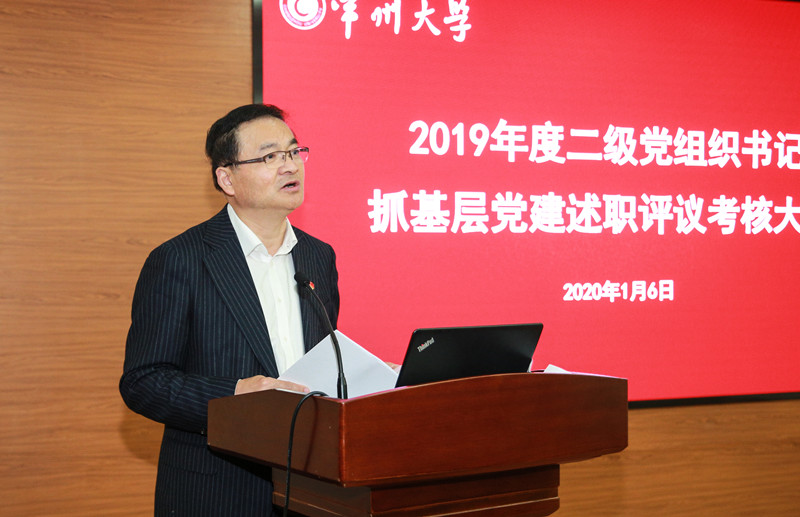 校党委书记陈群进行现场点评,充分肯定了各二级党组织书记抓基层党建的成绩。他指出,2019年,各二级党组织履行抓基层党建责任更加到位,党支部标准化建设工作扎实推进,党建工作基础保障水平进一步提高。但部分基层党组织还存在组织力不够强、党建重点任务落实不够到位、党员教育管理监督不够严格等问题短板。