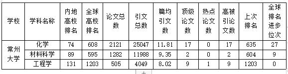 常州大学ESI全球综合排名第2122位(比上期进步18位),内地高校排名第137位,江苏省高校排名第20位。