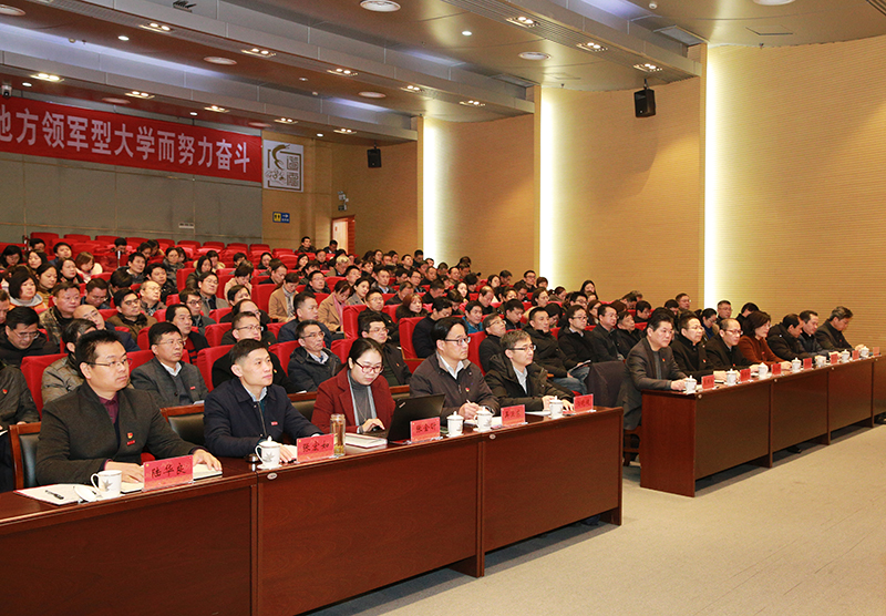 1月14日上午,我校在文彰楼报告厅召开“不忘初心、牢记使命”主题教育总结大会,深入学习贯彻习近平总书记在中央主题教育总结大会上的重要讲话精神和全省主题教育总结大会精神,全面总结学校主题教育开展情况,推动主题教育继续走向深入。省委主题教育第十一巡回指导组到会指导,全体校领导出席会议,党委委员、纪委委员、中层干部、区级以上党代表、人大代表、政协委员、教师代表参加会议。校党委副书记、校长蒋军成主持会议。