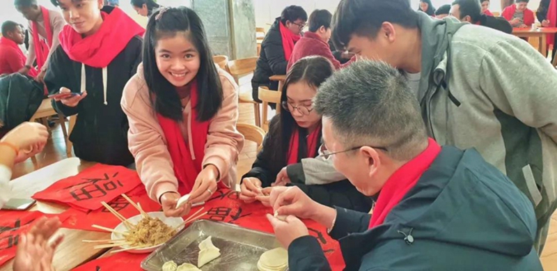 包饺子、写福字,汇聚常大,其乐融融,五洲同心,共迎春节。