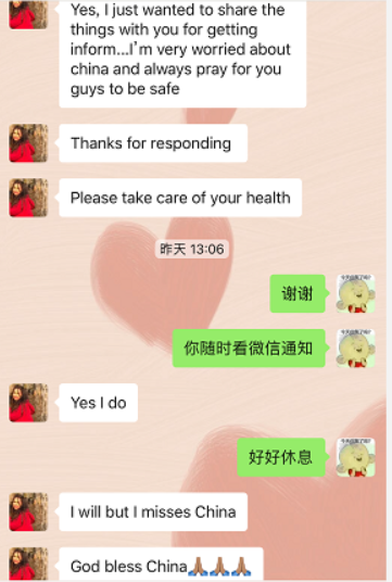 在这个“无必要不外出、外出请假戴口罩”的特殊寒假里,留学生们与我们并肩“战疫”,不仅是为中国打赢“防疫战”贡献一份力量,更是用实际行动表达了对第二故乡-中国的热爱与支持。