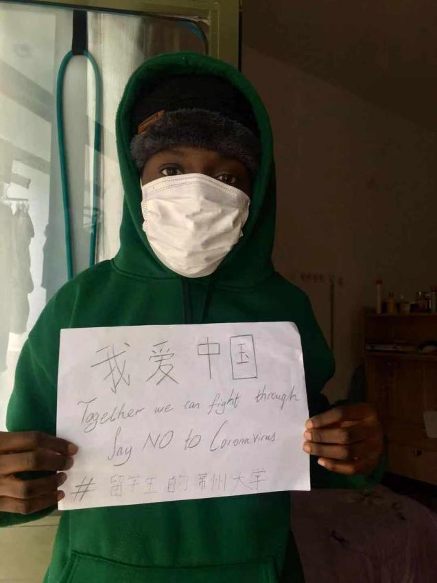 疫情面前,温暖感人的故事每天都在上演。宿舍管理员们见到有些留学生的口罩已经用完,立刻拿出自己购买的口罩给留学生佩戴上,看到被隔离的留学生在宿舍不能使用空调,立刻把自己的棉被送去。留学生们更用实际行动表达对常州大学的热爱。他们拿起纸笔手写暖心祝福,透过文字的力量,为武汉加油、为中国加油,传递对战“疫”胜利的坚定信心。