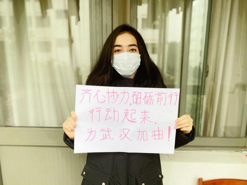 “齐心协力,砥砺前行,行动起来,为武汉加油!”写下这段话的是常州大学乌兹别克斯坦留学生雅雅。疫情发生以来,学校细化责任分工,切实守护留校留学生的生命健康安全。宿舍管理员们见到有些留学生的口罩已经用完,立刻拿出自己购买的口罩给留学生佩戴上,看到被隔离的留学生在宿舍不能使用空调,立刻把自己的棉被送去。留学生们也用实际行动表达对中国、对学校的热爱。他们拿起纸笔,手写暖心祝福,透过文字的力量,传递对战“疫”胜利的坚定信心。寒假已经回家的留学生们也心系中国、心系常大,远隔千山万水,给老师和同学们送来了最真挚的祝福。大爱同行,无论身处何地,常大人的心始终与祖国在一起,他们用自己的点滴努力,贡献抗击疫情的常大力量!