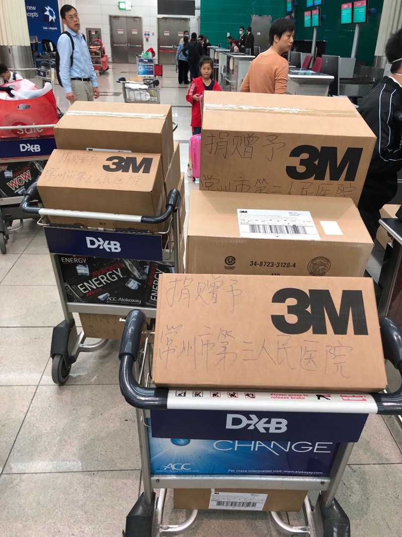 2月5日凌晨2点多,沪宁高速花桥收费站,常州大学西太湖校区管委会陈婷老师从迪拜带回的25箱3000只医用口罩终于完好无损地交至常州市第三人民医院医生手中。至此,历时30个小时的一场跨国接力完美收官。疫情牵动着海内外中华儿女的心,这3000只医用口罩是由常州籍华人捐款,委托常州市侨联协助购买并定向捐赠给市三院的医疗物资。因私在迪拜的陈婷得知此事后,当即表示会竭尽所能,为这次医疗物资转运贡献自己的力量。当口罩完好无损地完成交接,陈婷老师如释重负,她说:“能在抗击疫情的关键时刻贡献个人的绵薄之力是我的荣幸,更是身为常大人义不容辞的责任。”