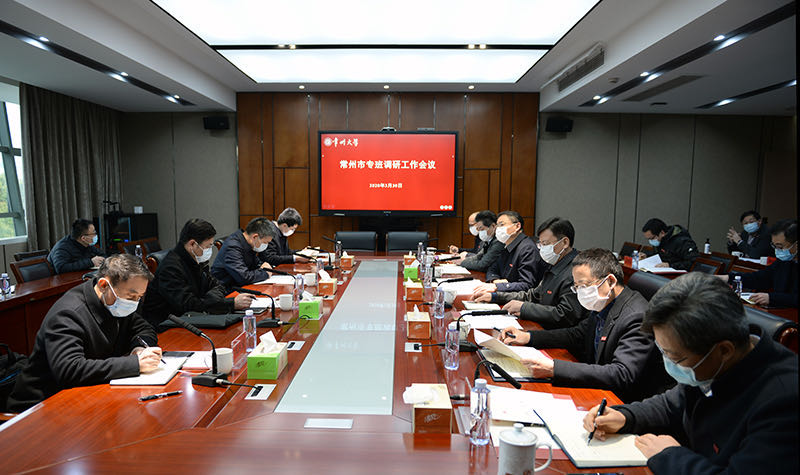 3月30日下午,常州市服务高等院校及推进城市、大学共同发展工作专班成员,市委常委、宣传部部长陈涛,副市长陈正春,市教育局局长杭永宝和副局长王华刚一行来校调研,推进我校创建江苏高水平大学。校党委书记陈群,校长蒋军成,党委副书记戴国洪,副校长陆锦冲、苏旭平、徐守坤出席调研会,学校相关部门负责同志参加会议。