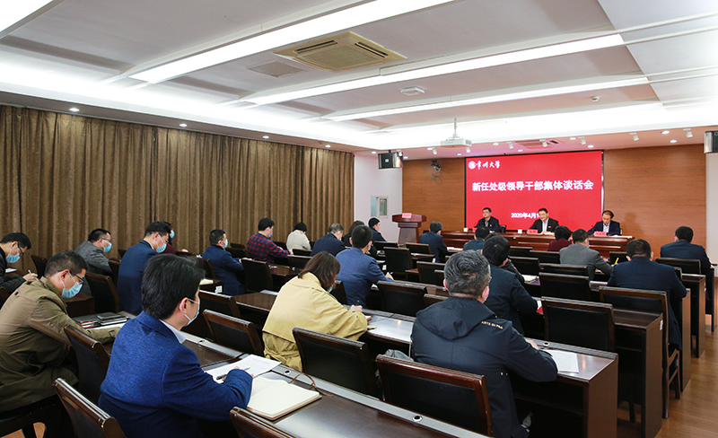 4月16日下午,校党委在文正楼第四会议室召开新任处级领导干部集体谈话会。党委书记陈群与近期新任处级领导干部进行集体谈话,党委常委、纪委书记、监察专员邱正祥与新提任干部进行集体廉政谈话。党委常委、组织部部长闫海波主持会议。