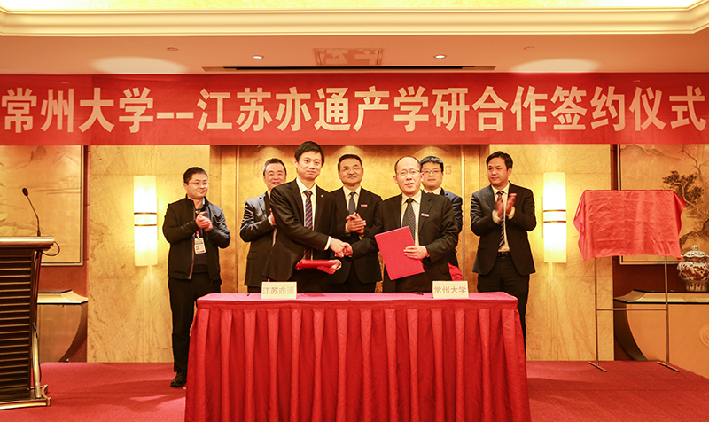 为全面落实常州大学第二届委员会第四次全体会议精神,进一步彰显学校石油石化办学特色、服务常州地方经济发展,4月14日,常州大学与江苏亦通石油科技有限公司产学研战略合作签约仪式在江苏亦通石油科技有限公司举行。常州国家高新区管委会副主任李皓、常州国家高新区商务局招商局局长杭宏伟、常州国家高新区科技局副局长陆伟、新北区春江镇副镇长陈辉、常州滨开区商务局副局长纽晓彬、常州滨开区科技经发局科技人才科科长邹梅一,江苏亦通石油科技有限公司董事长梅立新、执行董事梅奕中、总经理徐梁、副总经理殷坚,常州大学党委书记陈群、副校长苏旭平,发展规划处、产学研合作处、石油工程学院相关负责人及教师代表出席签约仪式。梅奕中主持仪式。