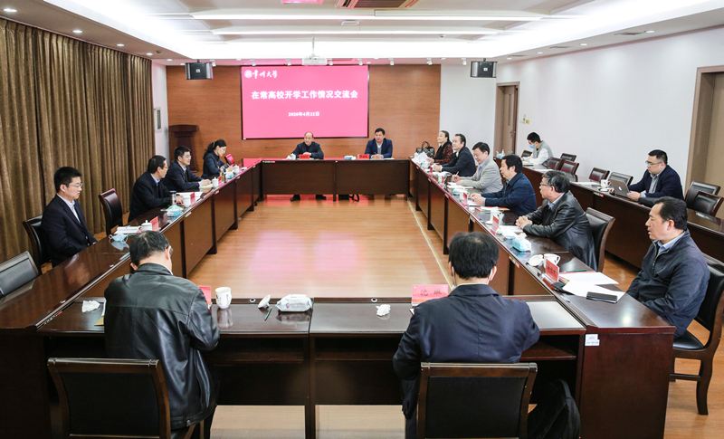 蒋军成代表学校对省教育厅、兄弟高校领导的到来表示热烈欢迎。他重点围绕师生返校方案、应急预案、返校演练、校园封闭管理、后勤保障服务等方面,详细介绍了我校返校工作准备情况。与会其他高校负责人也分别介绍了本校开学准备工作,并就如何做好开学相关工作进行了探讨交流。