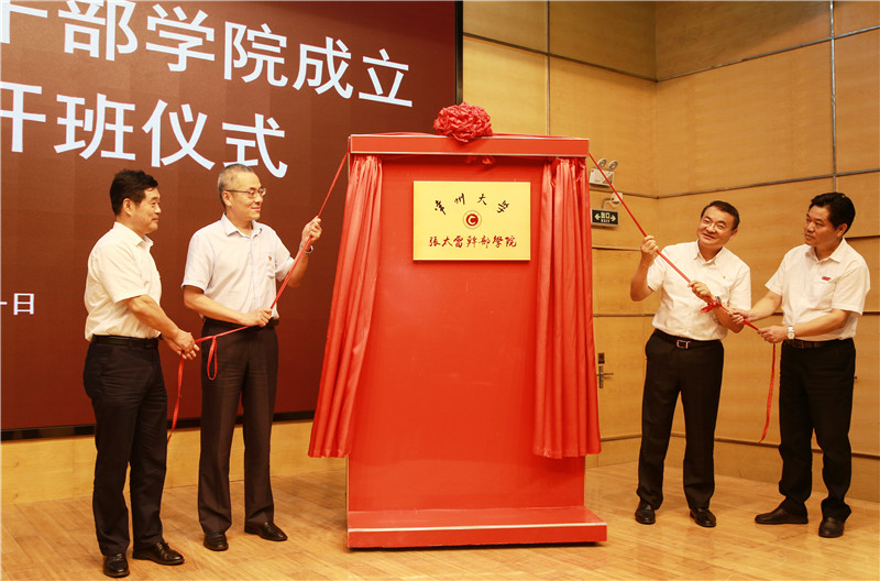 吴逵隆(左二)、梅向东(左一)、陈群(右二)与戴国洪(右一)共同为常州大学张太雷干部学院揭牌