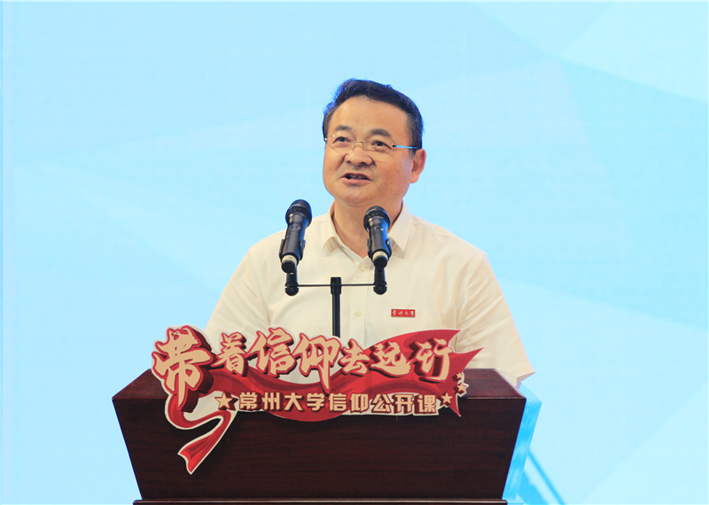 7月3日下午,带着信仰去远行——常州大学信仰公开课在西太湖校区礼堂开课。共青团江苏省委高校部副部长袁大伟,共青团常州市委副书记庄铠,共青团常州市武进区委副书记徐敏,校党委书记陈群,校党委副书记、副校长戴国洪出席活动。党办校办、组织部、宣传部、教务处、学工处、西太湖校区、团委等职能部门负责人,各学院党委副书记、团委书记及校院两级青马学院学员代表300余名师生参加现场活动。活动同步向全校团员青年进行现场直播。
