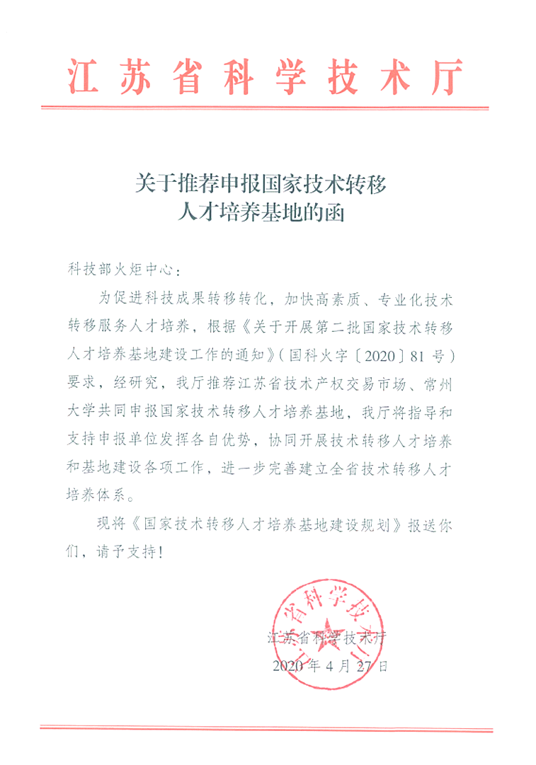 近日,科技部火炬中心公布了第二批国家技术转移人才培养基地名单,江苏省技术产权交易市场等25家单位被确定为第二批国家技术转移人才培养基地。常州大学作为江苏省科技厅推荐、与江苏省技术产权交易市场共同申报该基地的单位,依托全省唯一一家“江苏省技术转移(常州大学)研究院”,将承担获批基地的教学体系建设、智库建设、标准研究、线上教学平台运行管理、师资队伍建设等重要工作。