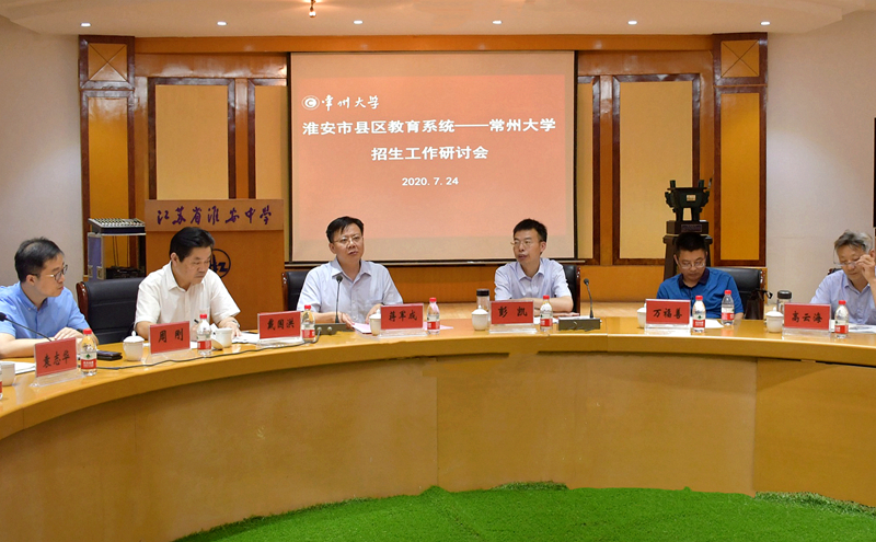 学校在淮安市召开的县区教育系统招生工作研讨会上,校长蒋军成对长期以来关心和支持常州大学发展的淮安市县区的有关领导和中学校长表示感谢,并介绍了学校服务地方发展特别是对接淮安市产业发展、技术转移等方面取得的成绩,希望大家积极推介和宣传常州大学,为常大输送优质生源。戴国洪介绍了近几年淮安地区生源的考研及就业情况。
