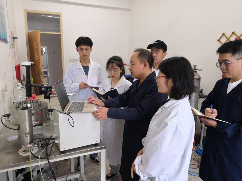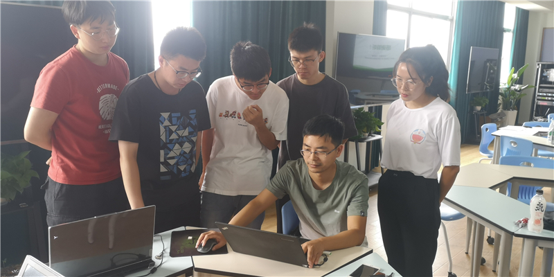 指导老师陶磊(左三)与参赛学生积极备战