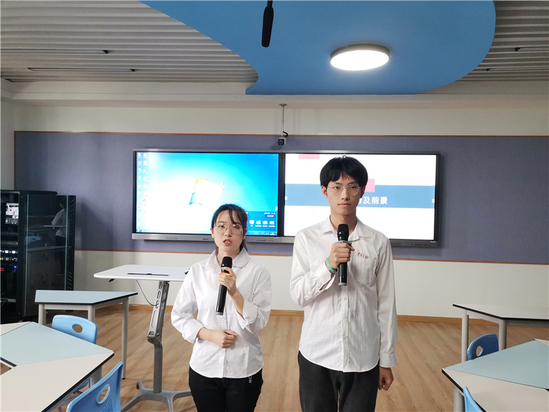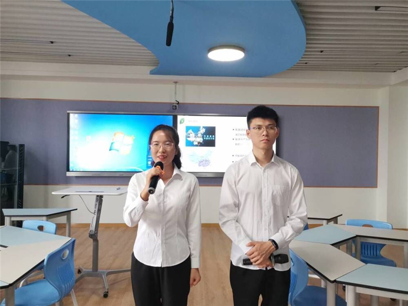 《“多能耦合,节能除霜”——一种PVT太阳能-空气源相变储能复合热泵供暖系统》项目答辩队员蔡宝瑞(右一)、范文英(左一)赛前准备