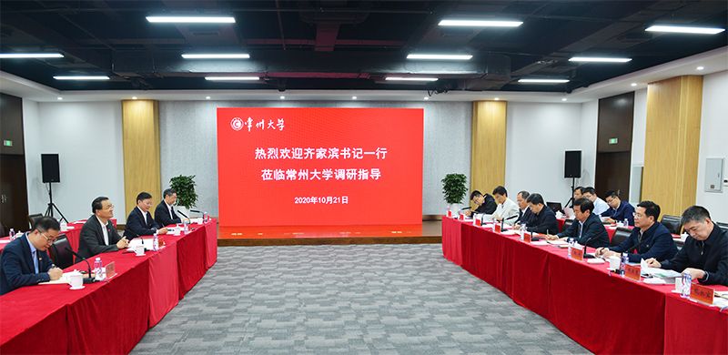 10月21日下午,常州市委书记齐家滨,市委常委、宣传部部长陈涛,市委常委、市委秘书长方国强,副市长陈正春来校调研,实地参观考察并进行座谈交流。校党委书记陈群、校长蒋军成及全体党委常委陪同调研。常州市教育局、科技局、工业和信息化局以及我校党办校办、发规处等相关部门负责人、专家学者参加调研座谈。