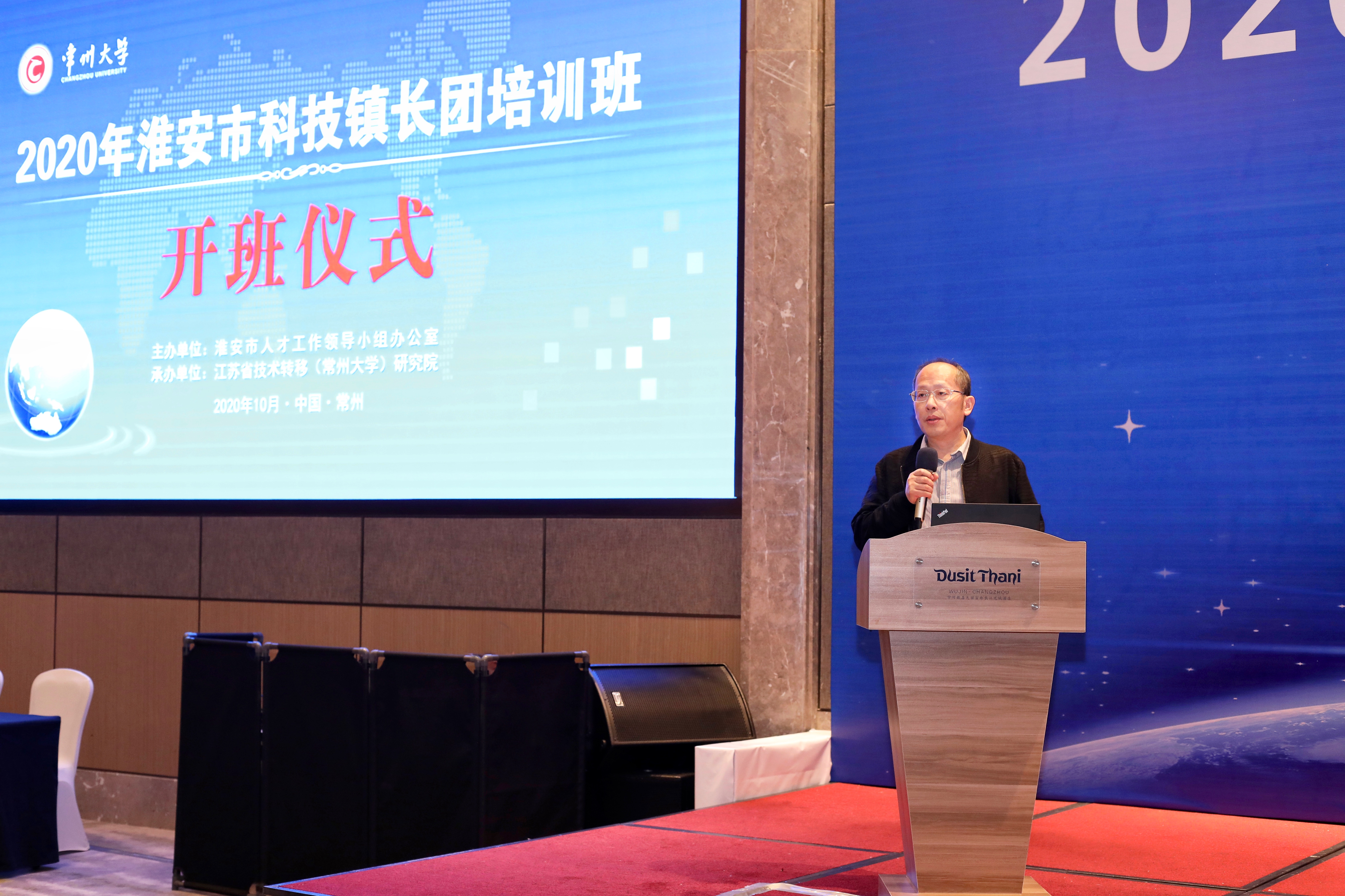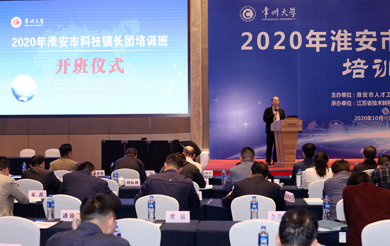 10月26日下午,由淮安市人才工作领导小组办公室主办,江苏省技术转移(常州大学)研究院承办的2020年淮安市科技镇长团培训班在我校开班。常州大学党委常委、副校长苏旭平,中共淮安市委组织部副部长、老干部局局长、人才办主任姜洪洋,江苏省产业技术研究院院长助理郜军,上海市科学技术交流中心成果转化处处长成晓建,江苏省科技资源统筹服务中心副主任孙兴莲,中共淮安市委组织部人才处处长吴蔚,常州大学党委常委、组织部部长闫海波出席开班仪式。来自淮安市、县、区科技镇长团和人才办公室近90名挂职干部参加培训。技术转移研究院院长宋国强主持开班仪式。