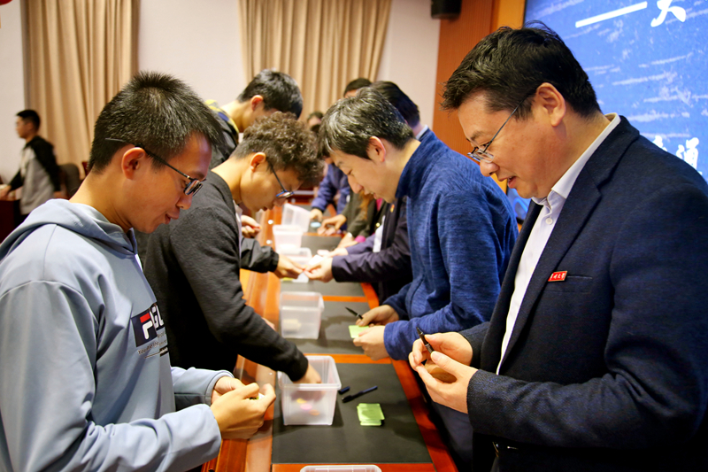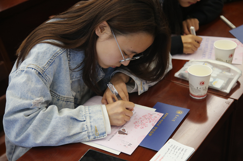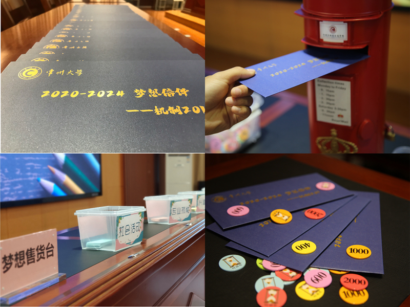 班会以“常大,你好”短视频作为开场,机制201班的同学们在视频中表达了自己对学校的美好祝福和大学梦想。现场体验环节,同学们绘制《2020-2024梦想信件》,写下自己对大学生活的期待与梦想,凭信件从戴国洪手中换取“梦想时间币”。然后用“梦想时间币”从老师们扮演的“梦想售货员”手中“购买”自己所需的“学分绩点”“人际交往”“社团活动”“专业技能”“兴趣爱好”“社会活动”六种能力卡,以此模拟体验大学四年生活,感受如何做好学业规划。最后,戴国洪抽取了两位同学的梦想信件,与他们探讨了关于时间规划的问题。