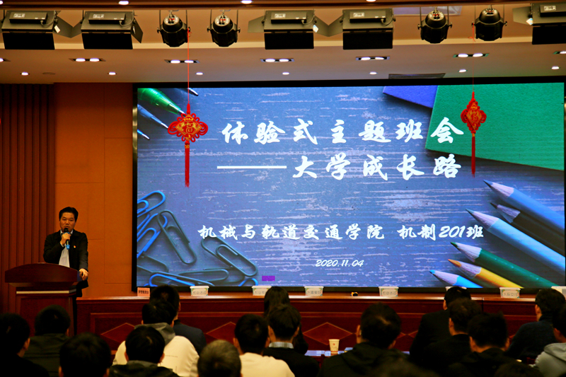 为帮助新生科学合理规划学业,11月4日下午,机械与轨道交通学院举办体验式主题班会——大学成长路。校党委副书记、副校长戴国洪作为联系学生班级的校领导出席活动,学生工作处、机械与轨道交通学院负责人,机制201班全体同学参加班会。