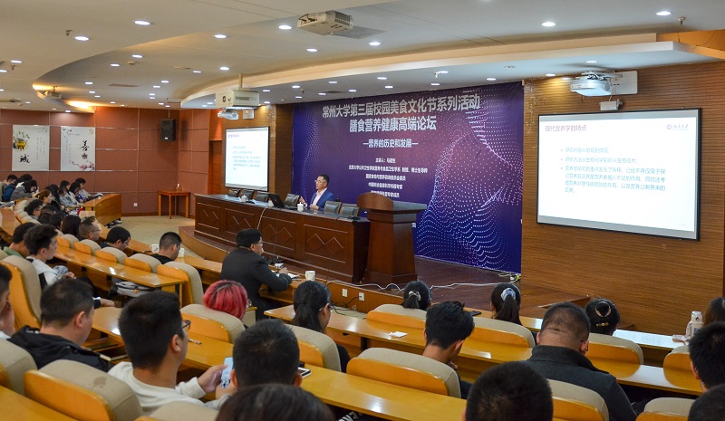 在美食节系列活动膳食营养健康高端论坛上,北京大学马冠生教授为我校师生带来精神大餐——《营养学的历史和发展》讲座,指导大家如何从营养、膳食、运动等方面保持身体健康,提高了大家对营养的科学认知。