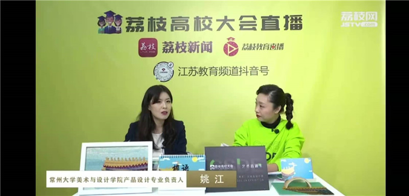 展会期间,我校产品设计专业负责人姚江在“荔枝高校大会·艺术直通车”直播间介绍了学校艺术教育特色及最新艺术招生政策;我校选拔12名校园主播参加“大学生设计展百校千人网络主播选拔活动”,介绍学校入围的设计作品,并详细讲解这些作品的设计理念及创意。