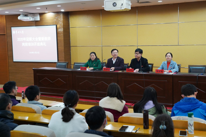11月25日下午,学校在科教城校区图书馆报告厅举行2020年迎新大会暨新教师岗前培训开班典礼。校长蒋军成出席会议并讲话。相关职能部门负责人参加会议。人事处处长李忠玉主持会议。