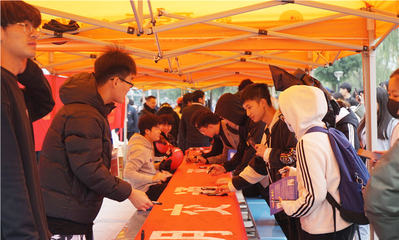 活动现场气氛热烈,同学们积极参与,纷纷在“文明交通,平安出行”签名横幅上签名。(通讯员/范丽 审核/史海峰 编辑/庄媛)