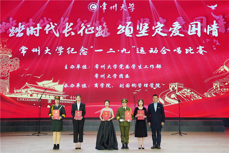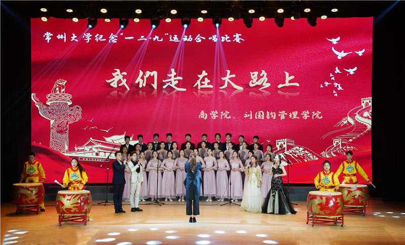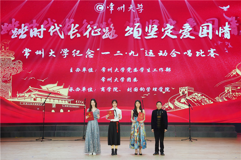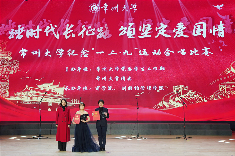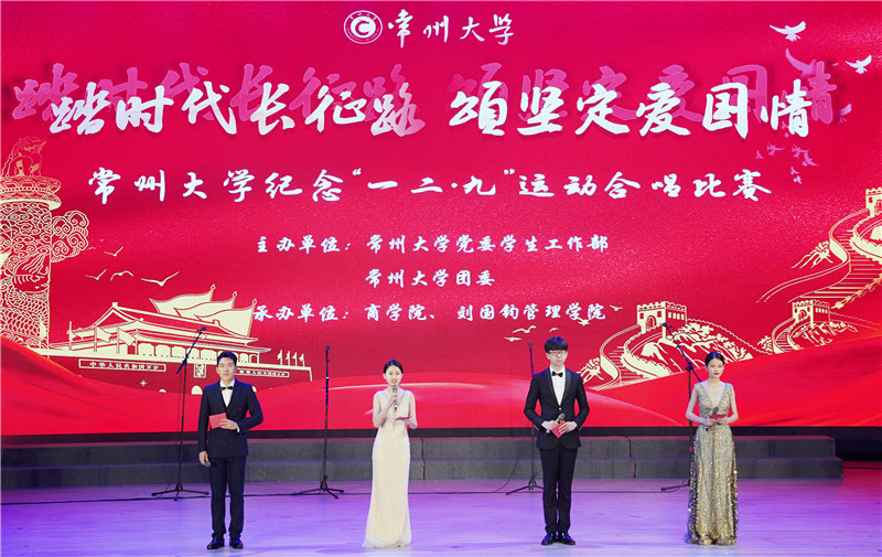 12月8日,常州大学第四届纪念“一二•九”运动合唱比赛在西太湖立艺楼礼堂开唱。活动由党委学生工作部、校团委主办,商学院 刘国钧管理学院承办。党委副书记、副校长戴国洪,副校长陆锦冲,总会计师陆华良,中国农业银行常州分行党委委员副行长邓俊玲出席活动,各职能部门、各学院负责人参加活动。