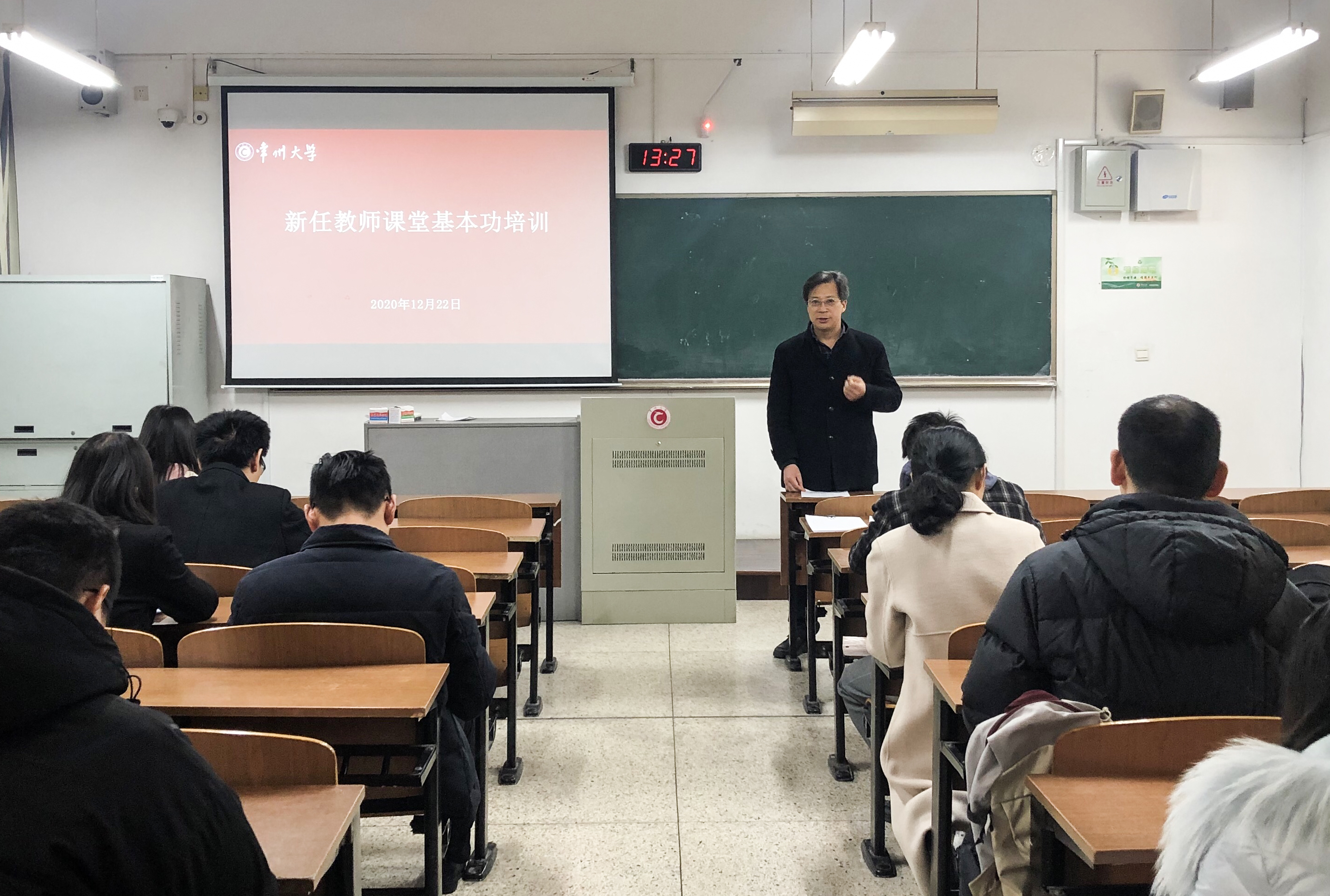 为加强教师教学发展建设,促进教师教学能力提升,帮助青年教师站稳讲台,12月17日与22日,教务处、教师教学发展中心在科教城校区教学辅楼开展新教师课堂教学培训活动。由教学名师、校教学督导及学院教学院长组成的专家组对学校近百名新教师进行了课堂教学技能培训指导。副校长徐守坤进行现场指导。