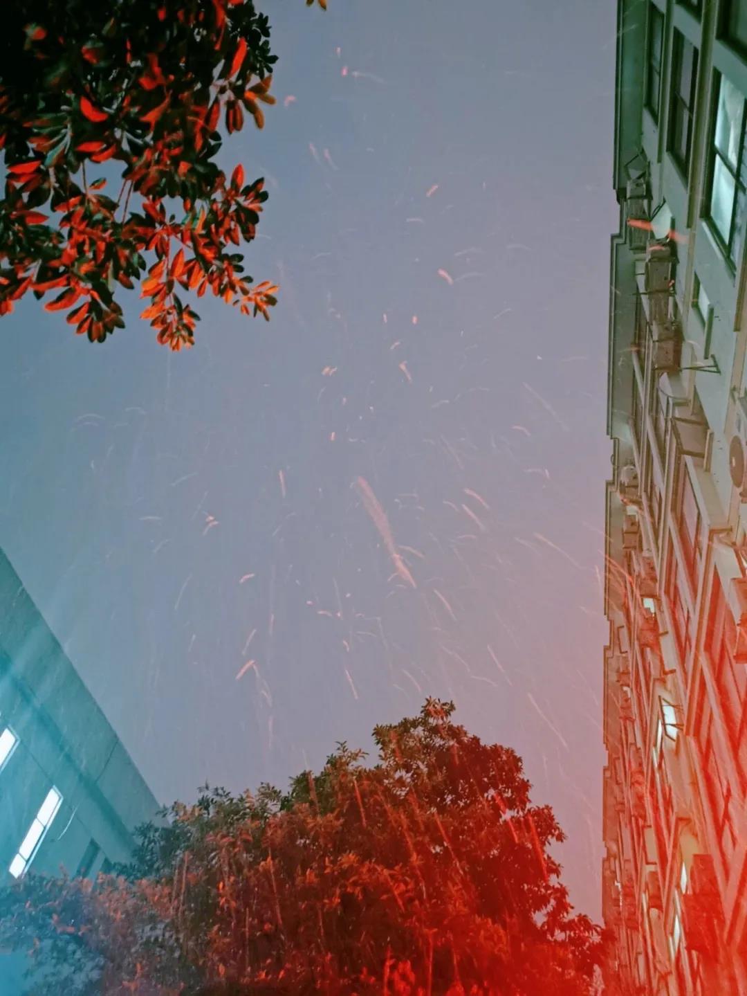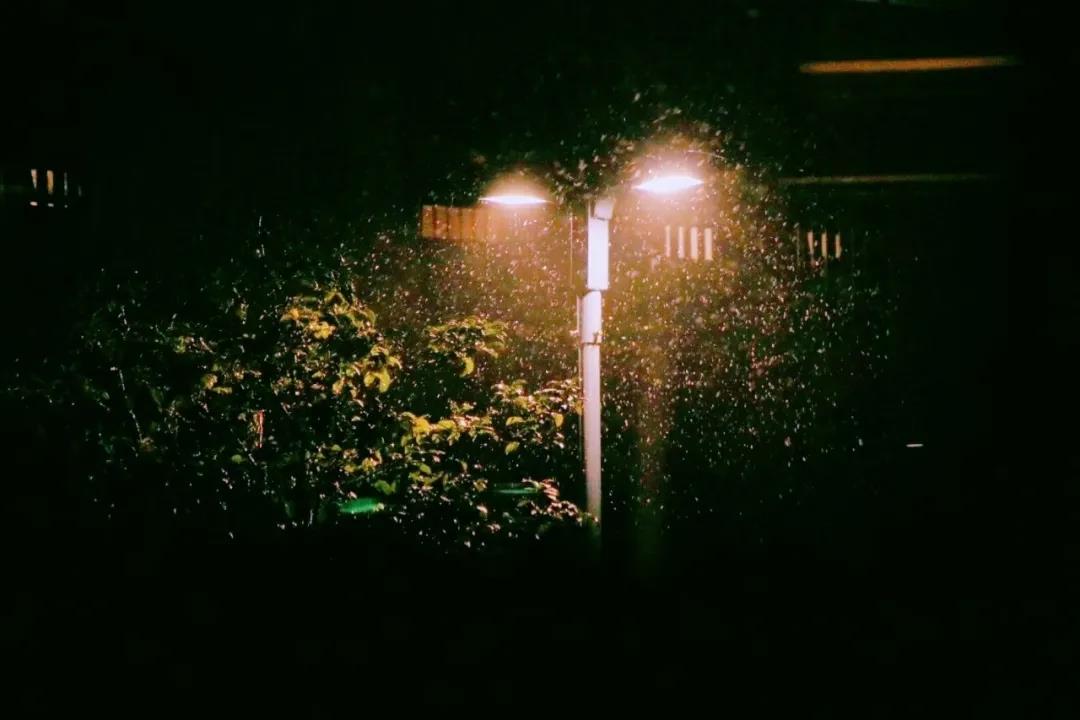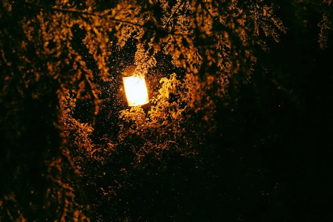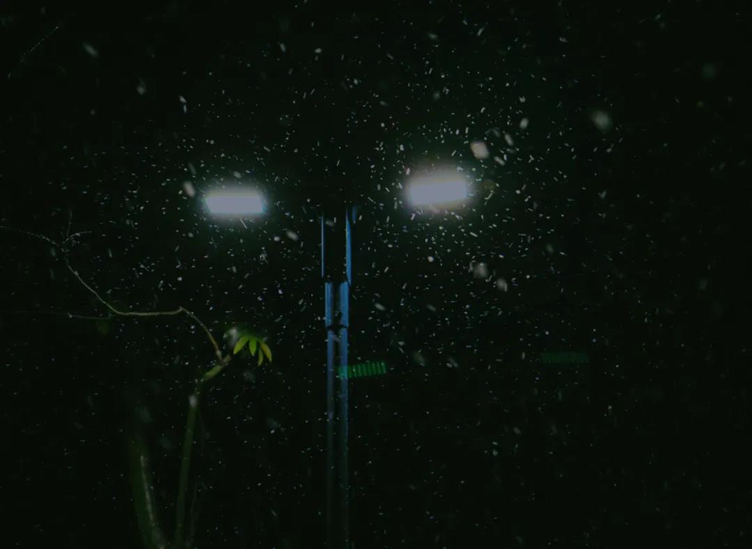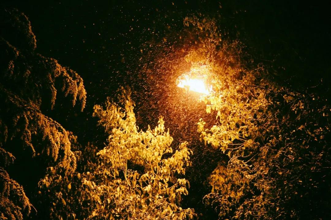 雪花在灯光下翩然起舞