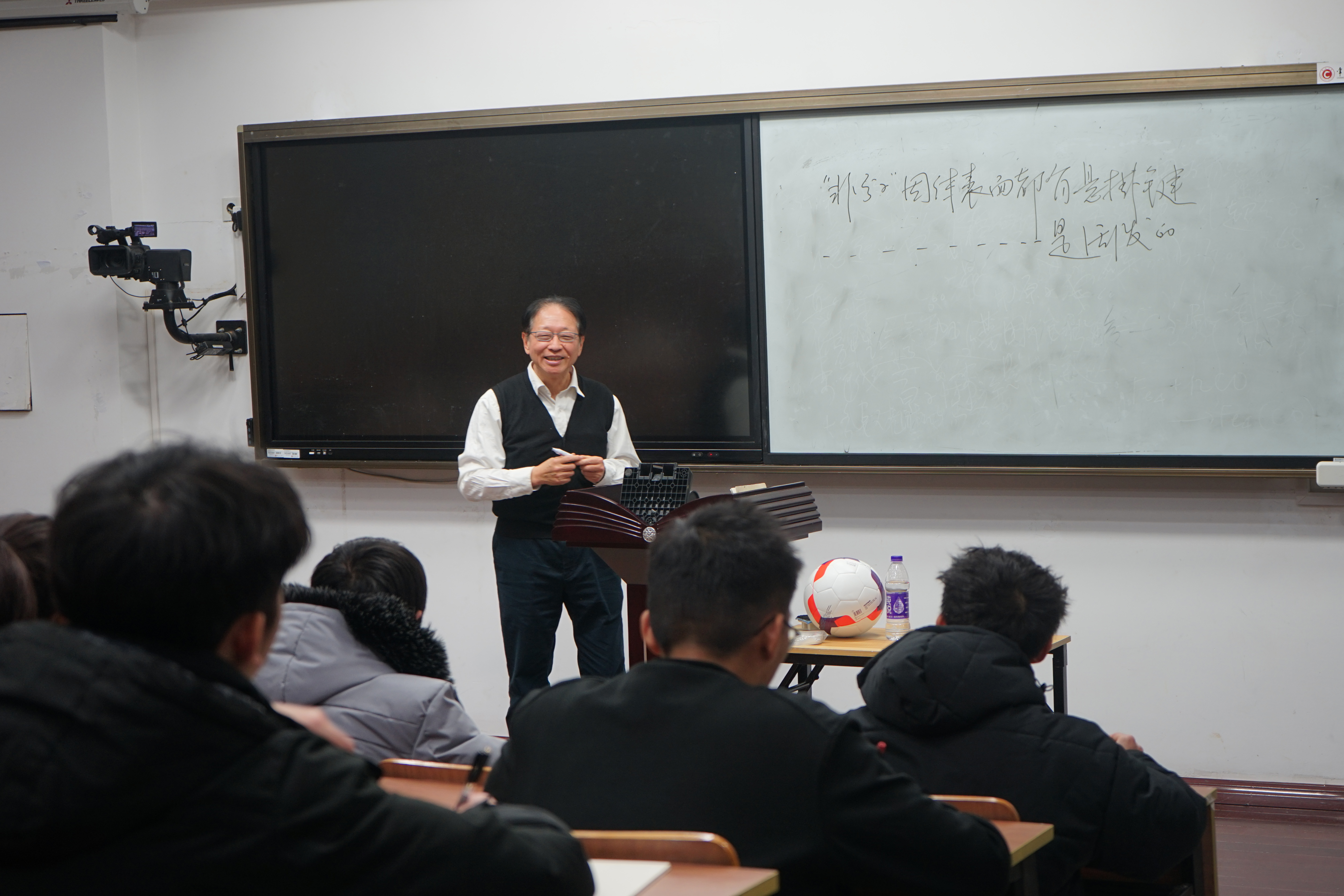 郑院士全程板书,授课内容包括化学键、晶体结构、原子团簇的特殊结构,深入浅出地给现场师生讲解了有关物质结构的知识。