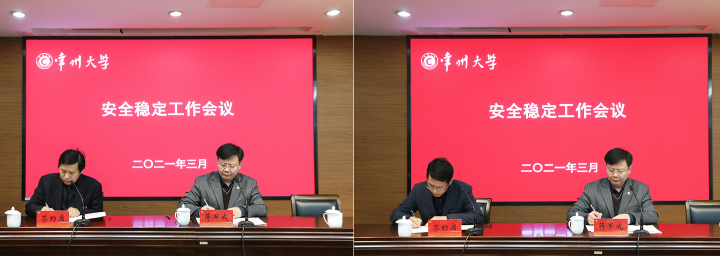 会上,蒋军成分别与部门代表实验室建设与管理处、学院代表石油化工学院签订《安全稳定目标责任书》。苏州大学保卫部部长黄水林作《国家安全与高校安全工作》主题讲座。(通讯员/范丽 审核/史海峰 编辑/张茹)