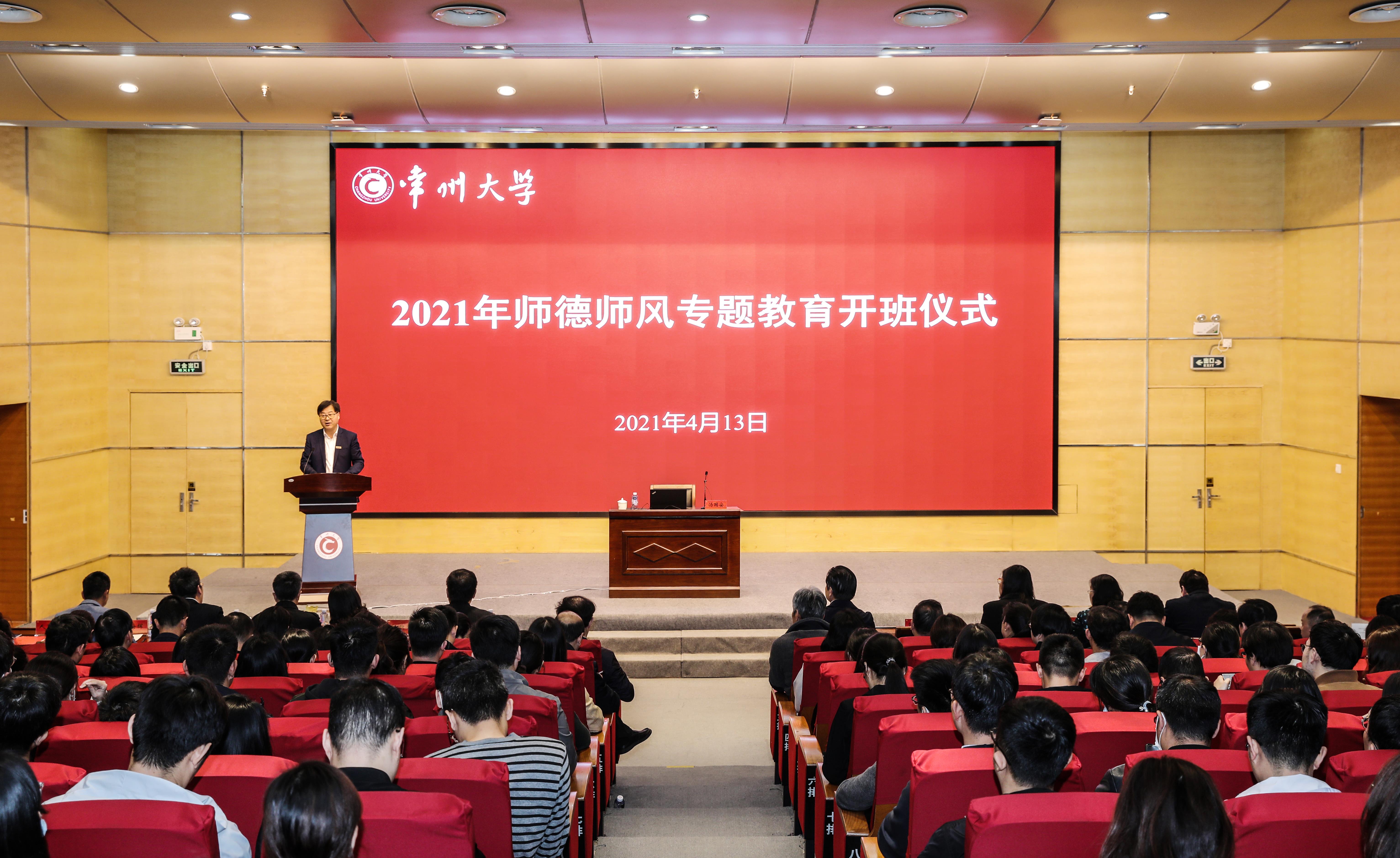 4月13日下午,常州大学在文彰楼报告厅举行2021年师德师风专题教育开班仪式。党委副书记、副校长戴国洪出席并致辞。国家级教学名师、全国师德模范、南京师范大学汤国安教授莅临我校作题为《谈为师之本,从教之道》的专题讲座。校师德建设委员会成员、各学院党委(党总支)书记及教职工代表参加活动。党委教师工作部部长李忠玉主持开班仪式。