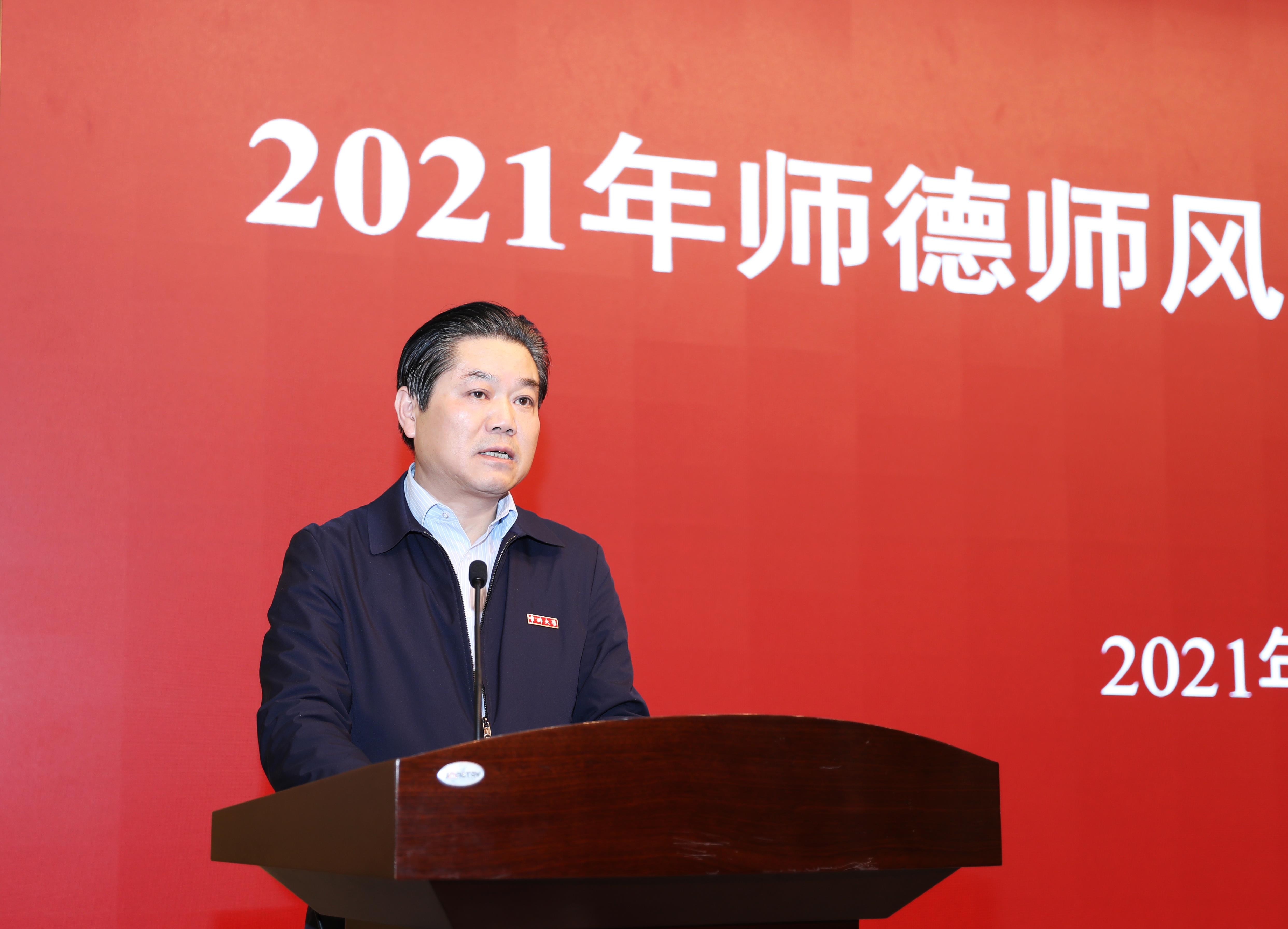 汤国安指出,教育工作的核心在立德树人,而师德无疑是为师之本。师德包括德高的师品、学高的师智、技高的师能和身正的师表。教师应当自觉贯彻落实新时代高校教师职业行为十项准则,坚定政治方向,自觉爱国守法,传播优秀文化,潜心教书育人,关心爱护学生,坚持言行雅正,遵守学术规范,秉持公平诚信,坚守廉洁自律,积极奉献社会,争做教书育人的楷模和标杆。