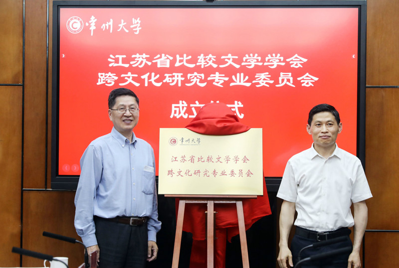 张宏如介绍了常州大学基本情况和发展历程,他指出,跨文化研究专业委员会的成立对进一步比较研究人类社会各种文明现象,加强不同文明之间的对话交流和互学互鉴,丰富中国文化对外传播的内容和实践有着深远意义。程爱民宣读了江苏省比较文学学会跨文化研究专业委员会成立批文,将委员会秘书处设在常州大学。江苏省比较文学学会常务副会长、跨文化研究专业委员会会长程爱民与张宏如共同为委员会成立揭牌。