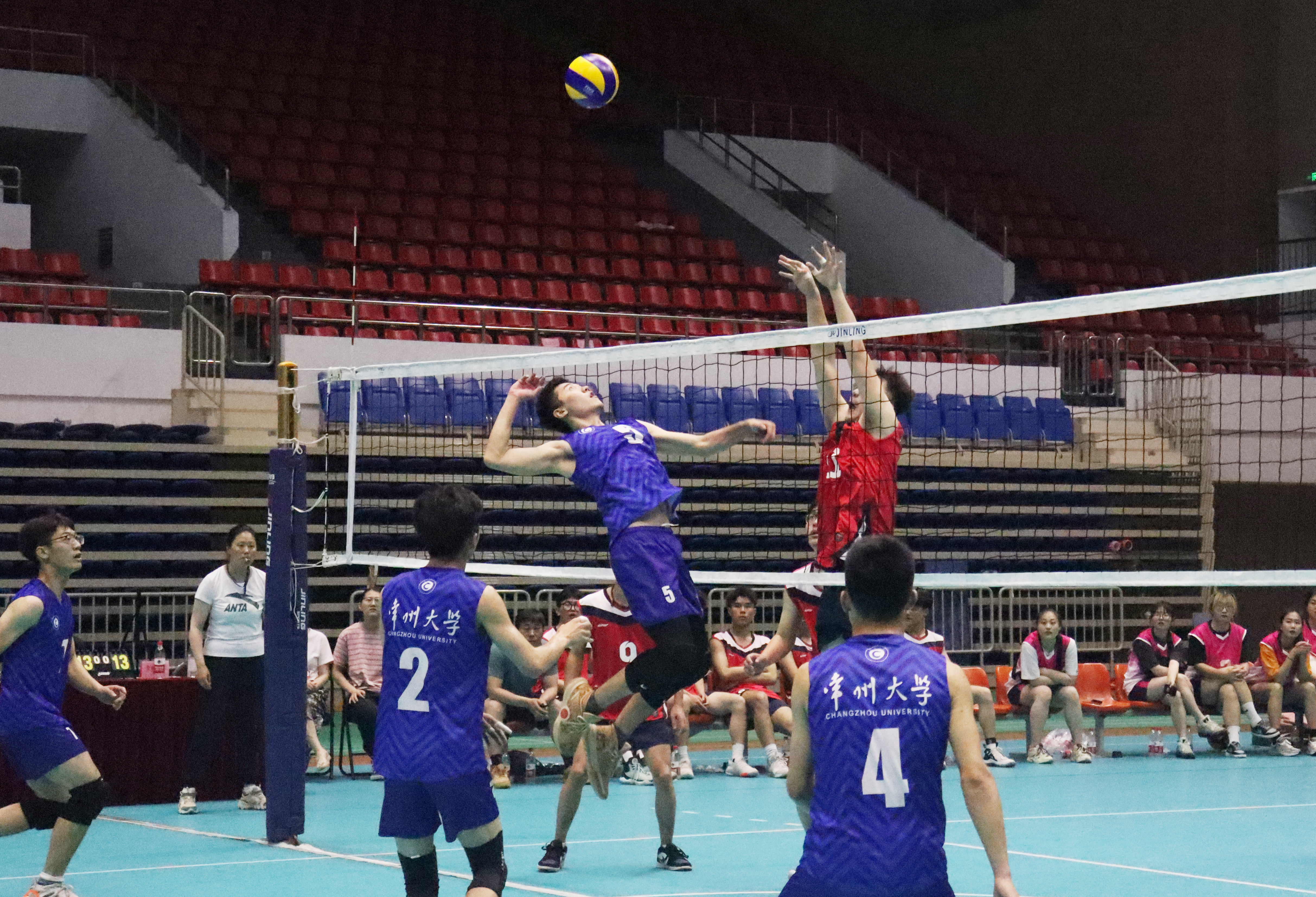小组赛中,我校男排分别以2:0战胜常州铁道高等职业技术学校队、常州工程职业技术学院队。4进2交叉赛的激烈比拼中,即使面对第二局3:9的不利局势,队员们仍然团结一致,顽强拼搏,不断缩小分差,战胜了河海大学常州校区队,挺进冠亚军决赛。决赛中,校男排迎战老对手常州工程职业技术学院队,队员们努力克服身体和精神上的疲惫,大胆运用技战术,排兵布阵,最终赢得比赛。