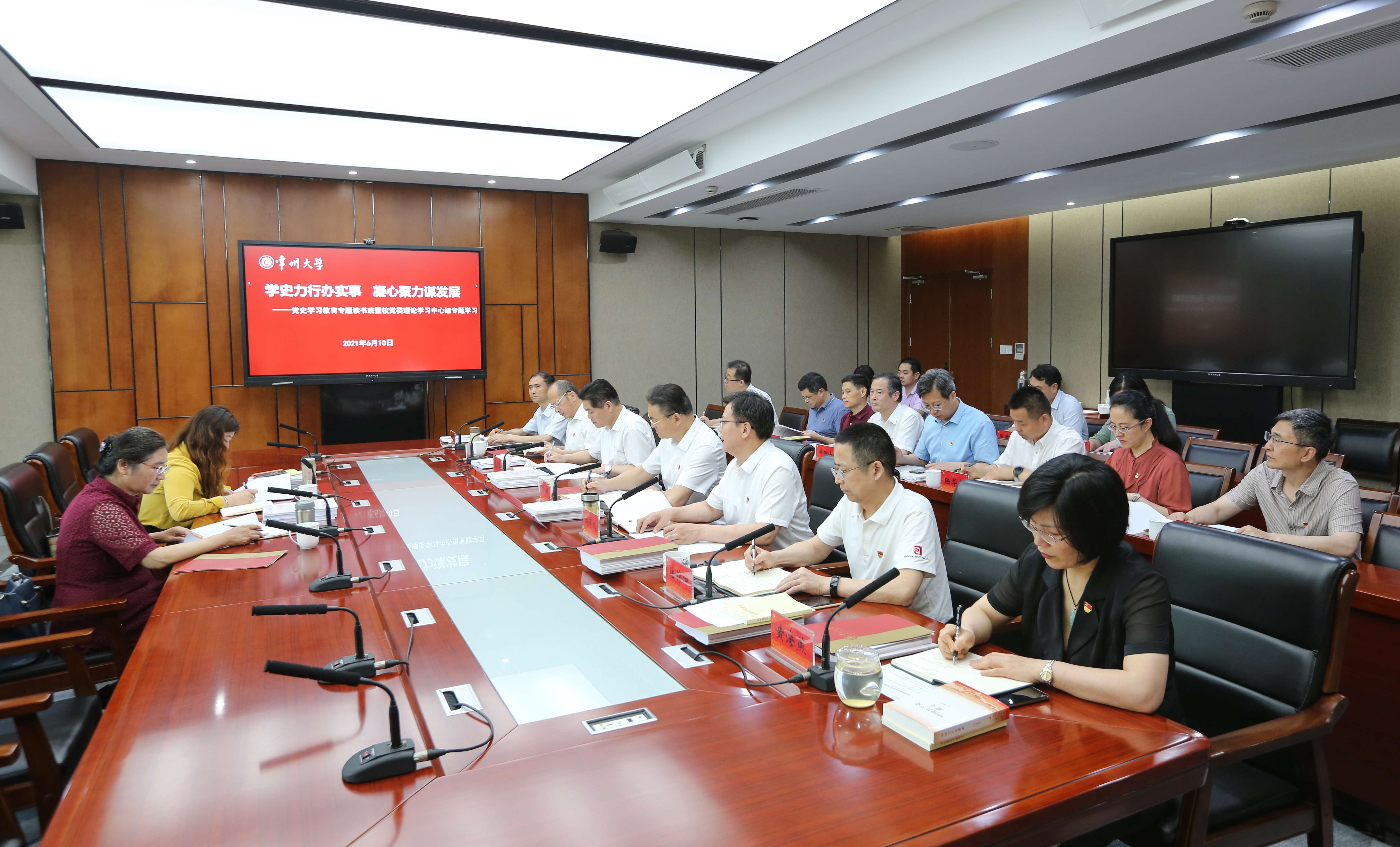 在学校党史学习教育专题读书班暨校党委理论学习中心组专题学习会上,中心组围绕“学史力行办实事 凝心聚力谋发展——党的十八大以来的历史”主题进行了学习。校党委书记陈群主持专题读书班并作总结讲话。党委副书记、校长蒋军成,党委副书记、副校长戴国洪,党委常委、副校长陆锦冲、苏旭平、黄海燕,党委常委、纪委书记、监察专员邱正祥分别围绕习近平总书记在两院院士大会、中国科协第十次全国代表大会上的重要讲话精神和《论中国共产党历史》《中国共产党简史》的相关内容进行领学,并作了重点发言。