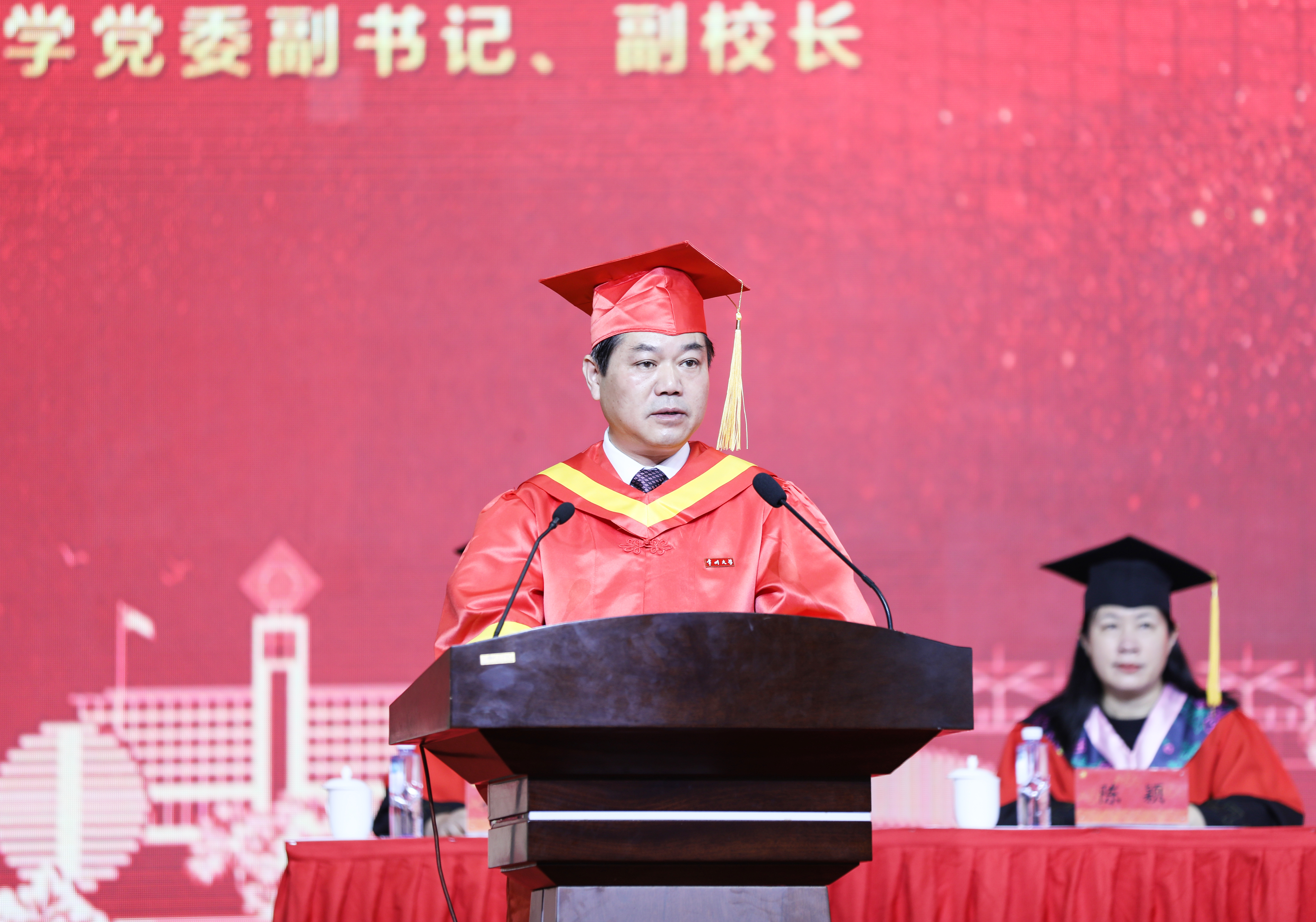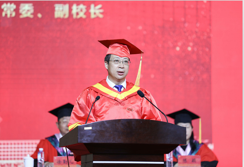 在热烈的掌声和欢呼声中,蒋军成为毕业生致辞。他寄语广大毕业生面对当今世界百年未有之大变局,站在“两个一百年”历史的交汇点上,面对徐徐展开的未来画卷,勇立潮头,坚持创新,答好时代答卷。他勉励毕业生将个人发展与国家发展、人类进步紧密结合,担负起光荣的历史使命。(通讯员/陈艳鼎 审核/柳铭 编辑/庄媛)