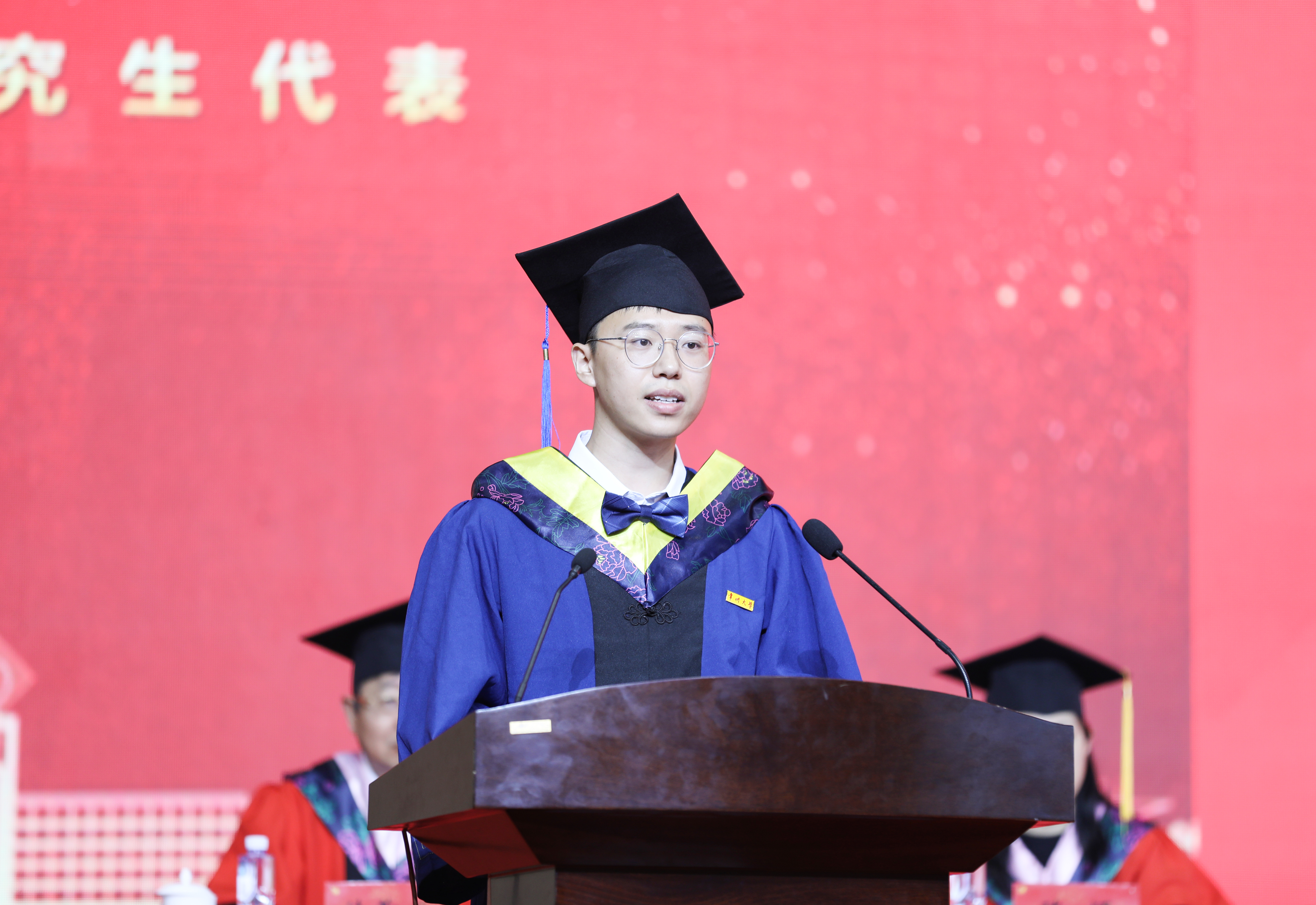 2018级微电子与控制工程学院硕士研究生陈成杰同学作为毕业生代表发言,他深情回顾了在常州大学的美好时光,感恩母校和师长的精心培养,号召毕业生担当新使命,以不变的热忱、坚定的理想,勇敢面对瞬息万变的社会,做一名“常怀壮志,大有可为”的常大人!