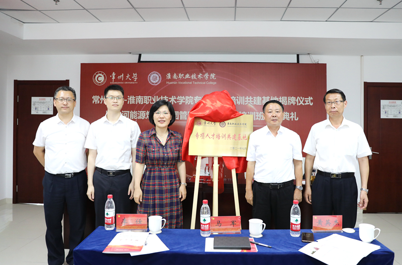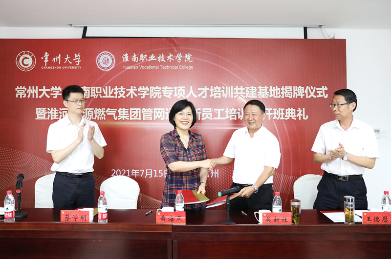 双方签署战略合作协议并为常州大学-淮南职业技术学院专项人才培训共建基地揭牌。(通讯员/张晨 审核/阮霞 编辑/张茹)