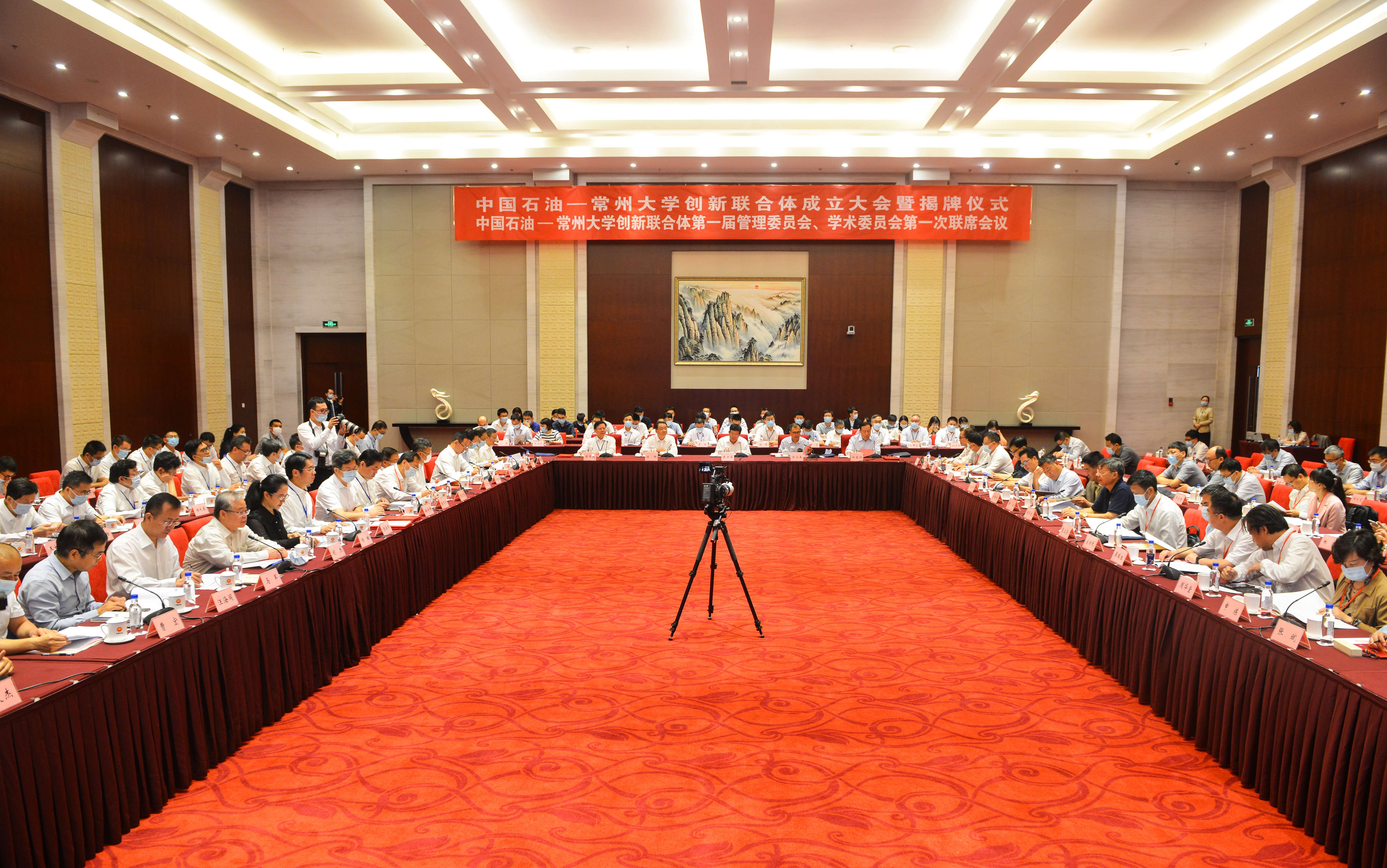 9月9日,“中国石油天然气集团有限公司—常州大学创新联合体”(以下简称“创新联合体”)成立大会暨揭牌仪式在北京石油科技交流中心举行。中国石油天然气集团有限公司(以下简称“中国石油”)党组成员、副总经理焦方正,两院院士范维澄、苏义脑、袁士义、吴锋、孙金声、徐春明、李宁、任其龙,中国石油科技管理部总经理匡立春、副总经理杜吉洲及中国石油下属相关科研院所领导和专家,常州大学党委书记陈群,党委副书记、校长蒋军成,党委副书记、副校长戴国洪,党委常委、副校长徐守坤,党委常委、副校长陈海群,党委常委、宣传部部长杨琳出席会议,常州大学相关部门、学院负责人及各项目组成员参加会议。匡立春主持成立大会暨揭牌仪式。