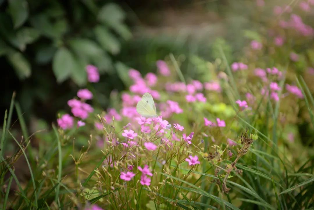 记得蝴蝶扑棱着翅膀,在叶子上小憩