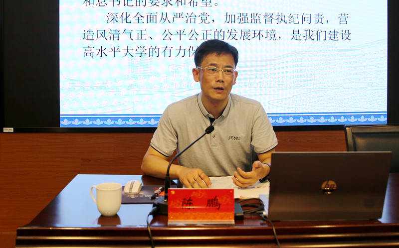 与会人员集中观看了《如何有效发挥二级党组织纪检委员作用》学习视频,认真聆听了江苏师范大学党委常委、纪委书记、派驻监察专员陈鹏所作的《做好纪检监察工作,推进高校全面从严治党向纵深发展》专题辅导报告。陈鹏以自身工作和生活中的所见、所感为切入点,从全面从严治党的新形势、新任务、新要求,新时代教育改革发展的新理念、新思想、新观点及江苏高校纪检监察体制改革和省委巡视工作成效等方面对高校全面从严治党形势进行了系统介绍,并结合江苏师范大学纪检监察工作的做法和成效,从如何把握纪委在全面从严治党中的职责定位、政治建设推动、精准监督开展等深入阐述了新时代做好高校纪检监察工作的方法和路径,对我校纪检监察工作的规范化、制度化建设具有很好的指导意义。