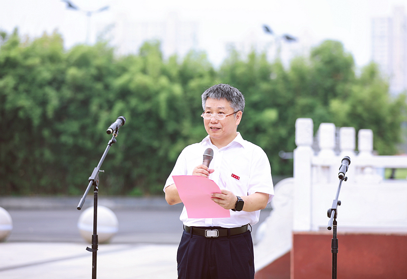 我校国旗班成员迈着铿锵有力的步伐护送国旗到升旗台,伴随着雄壮的《义勇军进行曲》,五星红旗迎着朝阳冉冉升起。邓林红教授以“漫漫科研路,拳拳报国心”为主题为全体学生上了开学第一课,勉励大家将个人价值融入祖国发展,铭记奋斗历史、传承科学家精神、书写强国篇章。常大附小少先队员代表殷昕宸、张佳萱,校青年学习社成员代表李文轩、冯思羽集体诵读《请党放心 强国有我》,现场共青团员、少先队员集体发出“请党放心,强国有我”的青春誓言,一声声铿锵有力、掷地有声的宣誓,庄严表达了以“青春之我”践行“强国有我”的决心。