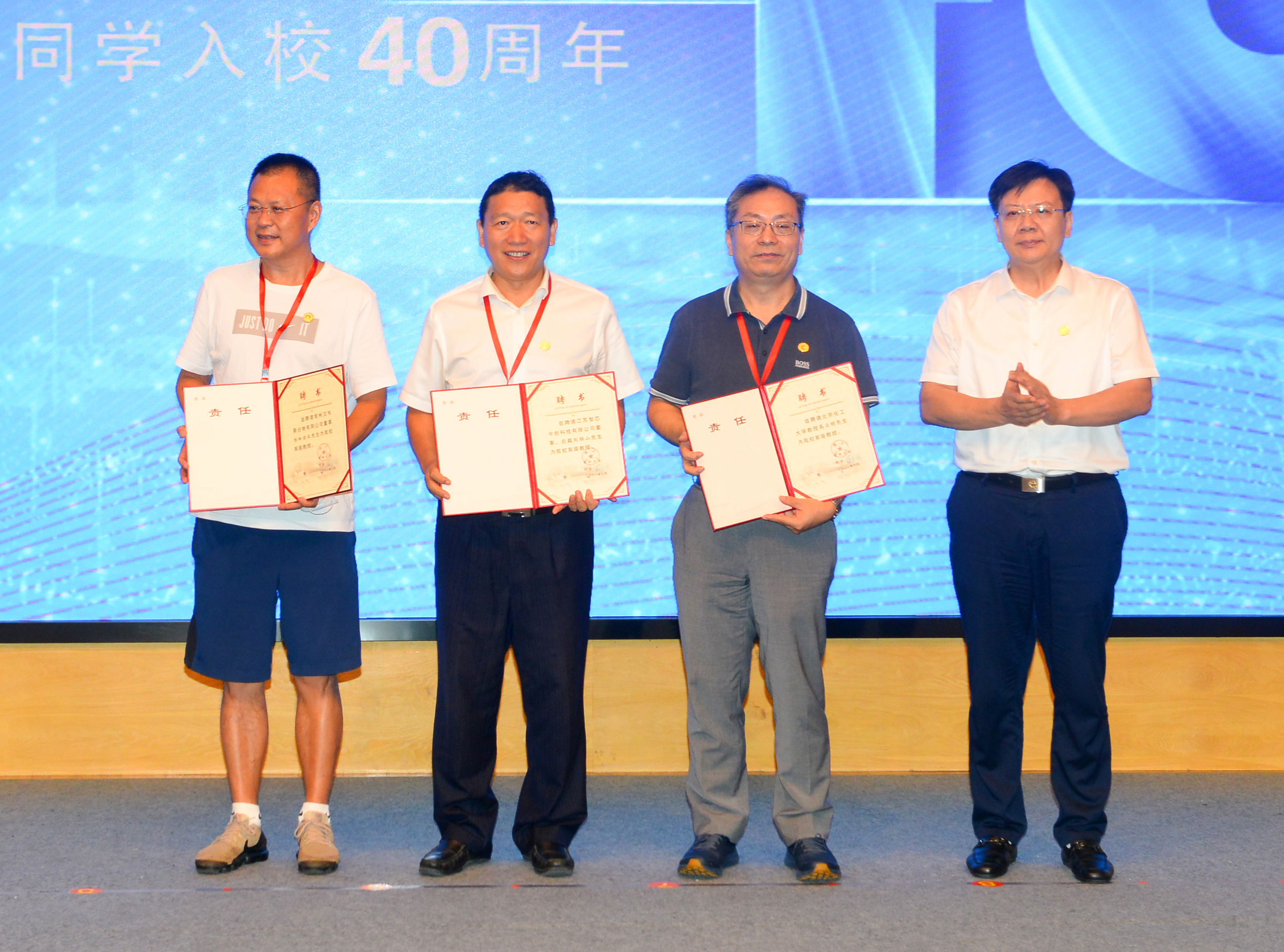 陆锦冲代表学校接受81级校友捐赠的纪念品,蒋军成向受聘为母校客座教授的校友颁发聘书并讲话。活动中,校友代表们共同追忆青春岁月,并为学校发展建言献策。