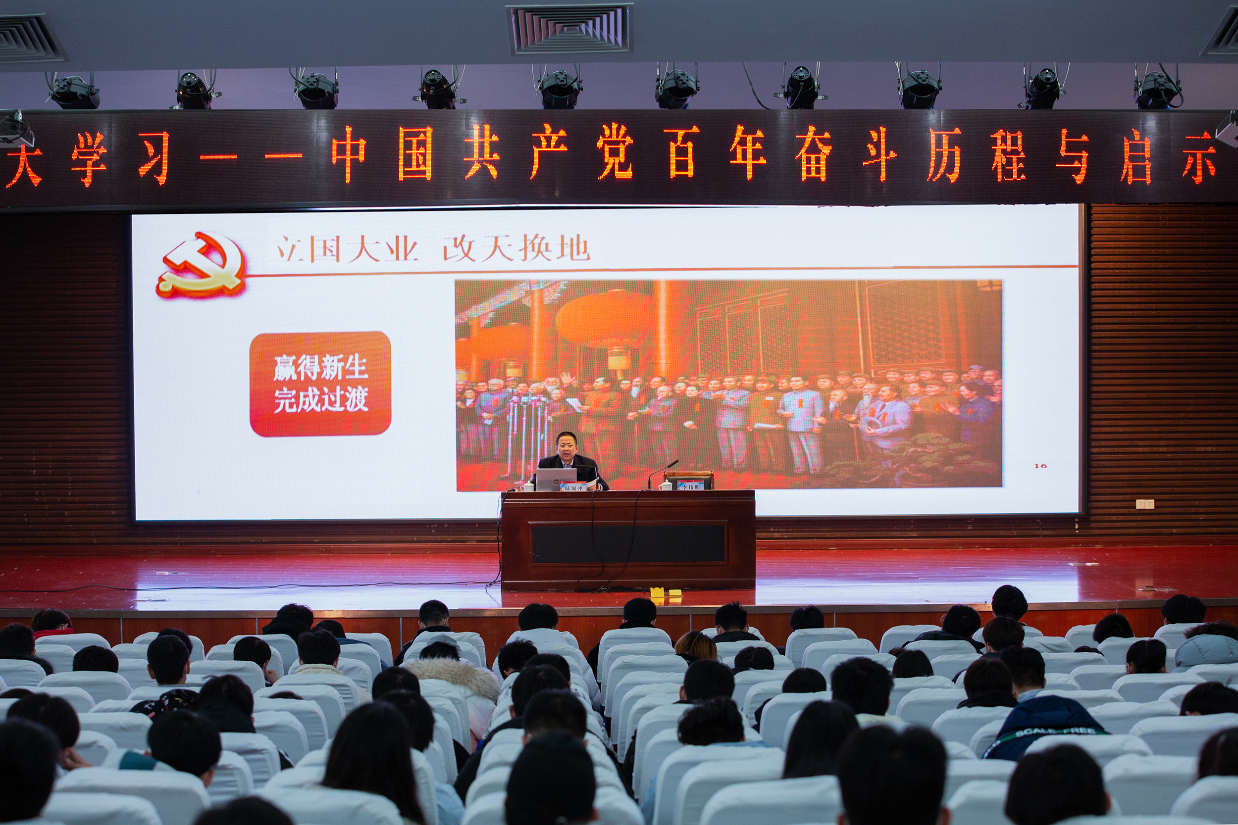 陆锦冲指出,今年是中国共产党成立100周年,在“两个一百年”奋斗目标的关键节点,重温党史、学习党史有特别重要的意义。他围绕“我们为什么学党史?”“学党史主要学习什么内容?”“学习党史给我们什么启示?”三个方面,以历史脉络为顺序,引用历史史料和现实案例,讲述了中国共产党百年历史,同时结合时事,生动阐述了中国共产党不忘初心,以行动诠释使命,带领中国人民为实现伟大复兴强国梦而不懈奋斗的伟大历程。