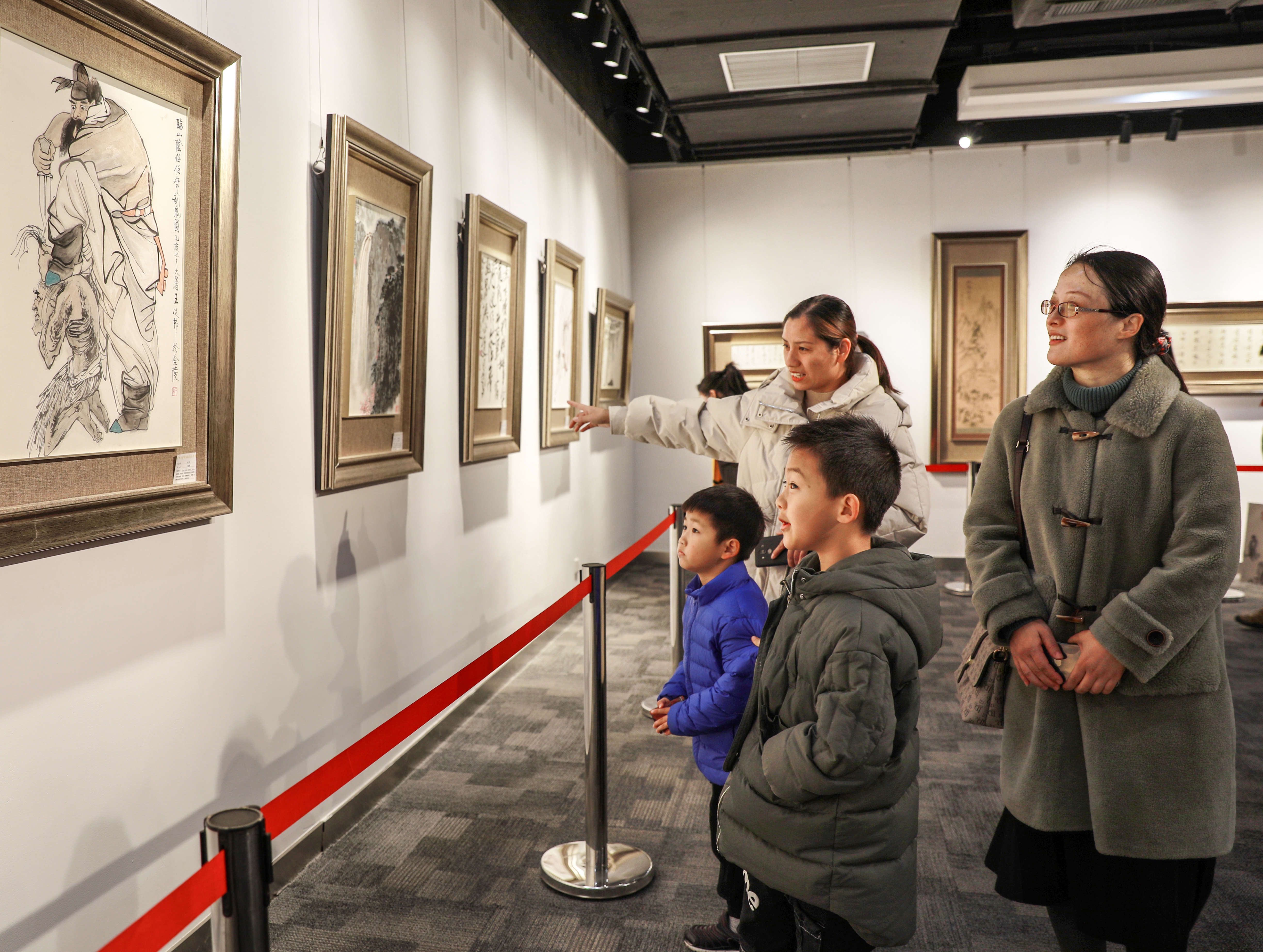 开馆仪式结束后,与会人员参观了“厚泽·育人”书画展。
