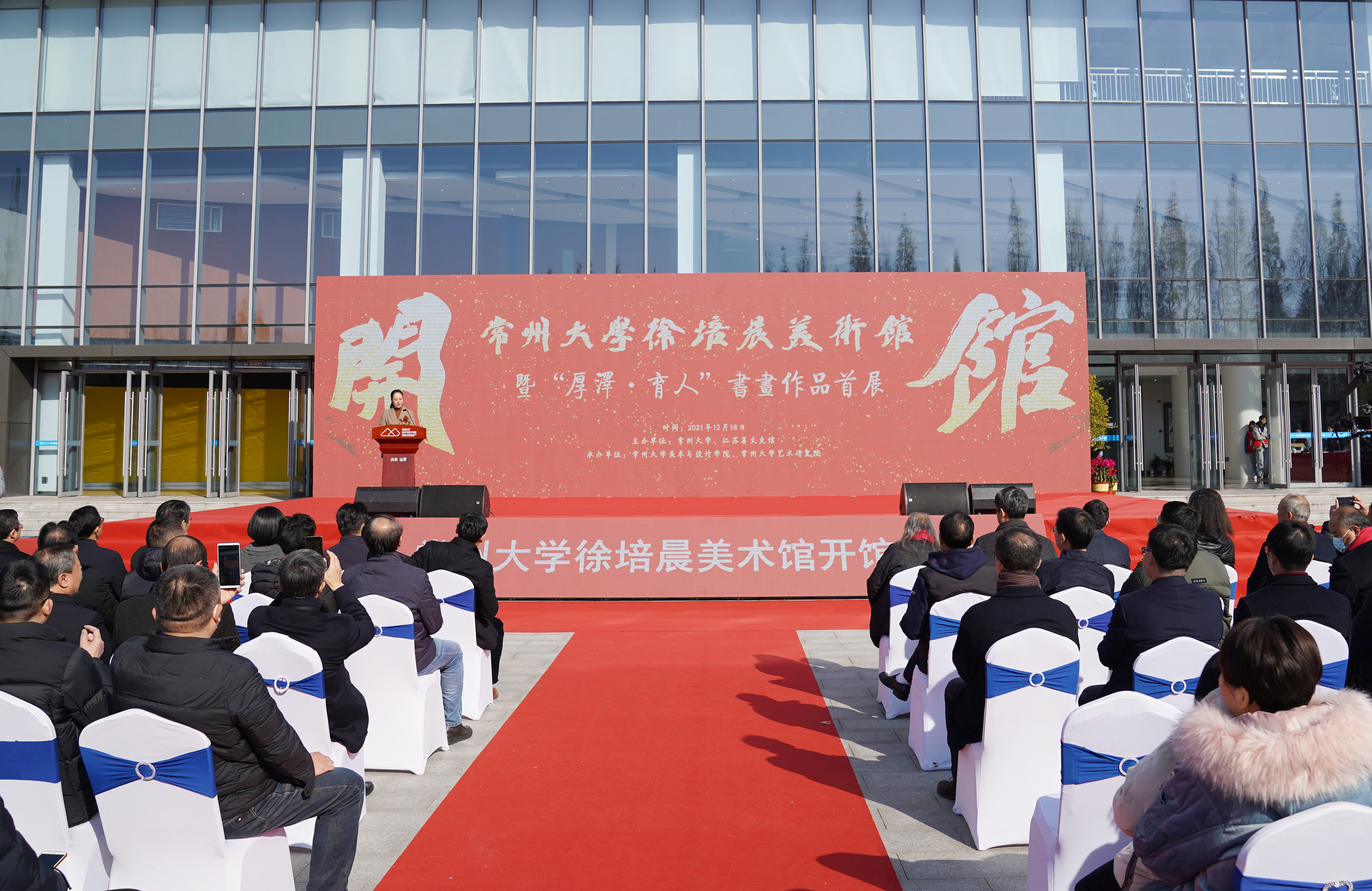 12月18日,常州大学徐培晨美术馆开馆仪式暨“厚泽·育人”书画作品首展在西太湖校区隆重举行。南京师范大学博士生导师徐培晨,中国人民对外友好协会秘书长王合善,南京特殊教育师范学院校长黄军伟,常州市政府副秘书长汪晓东,江苏省花鸟画研究会会长赵治平,常州大学党委副书记、副校长戴国洪,党委常委、副校长黄海燕、张宏如、陈海群,党委常委、组织部部长闫海波,党委常委、宣传部部长杨琳出席活动。杨琳主持开馆仪式。