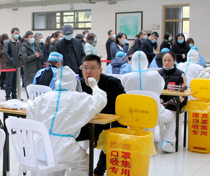 核酸检测工作有条不紊、高效快速,继续采取“1:10”混采制度。采样人员为武进区疾控中心专业人员,两天三班细分72组轮流入校开展咽拭子采集工作检测;登记人员为学校志愿者,经过严密培训熟练掌握了登记流程和使用登记系统;受检人员全程佩戴口罩,按序排队、身份核验、核酸采样、有序离场。本学期学校将继续开展每周常态化核酸检测工作,筑牢织密学校疫情防控网。(通讯员/朱菁菁 审核/周刚 编辑/孙悦)