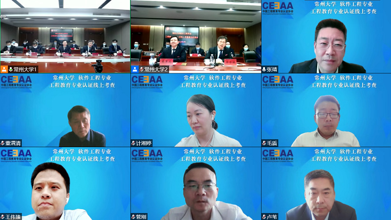 按照教育部高等教育教学评估中心、中国工程教育专业认证协会的安排和部署,4月25至26日,以国信蓝桥教育科技(北京)股份有限公司高级副总裁张靖为组长、西安交通大学董渭清教授、北京开课吧科技有限公司高级副总裁管刚、北京交通大学卢苇教授、百度高校合作部副总监计湘婷为组员、杭州电子科技大学王伟臻博士、西安交通大学毛盾博士担任秘书的中国工程教育专业认证专家组一行7人,对我校软件工程专业进行了为期2天的专业认证集中线上考查。