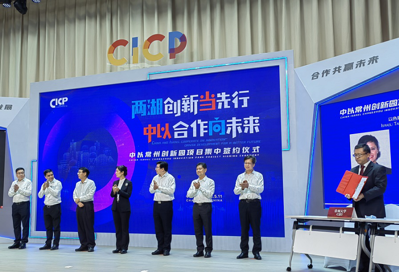 5月11日下午,中以常州创新园举行项目集中签约仪式,我校聘任的以色列希伯来语教师作为以色列人才项目进行云签约。本次共18个重点项目签约入驻,常州市委副书记、市长盛蕾为入驻项目颁发创新蓝钥匙,我校党委常委、副校长徐守坤,国际交流处、跨文化研究院负责人出席签约活动。